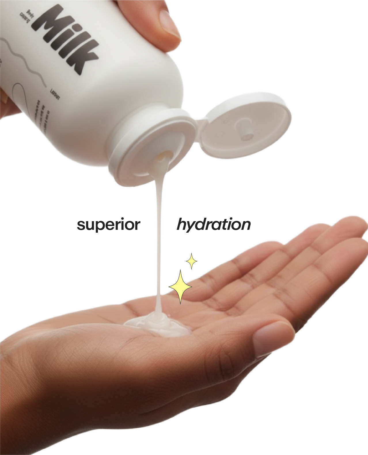 Not at all! bodymilk has a milky, fluid texture that melts into the skin, leaving a smooth, hydrated finish without stickiness.