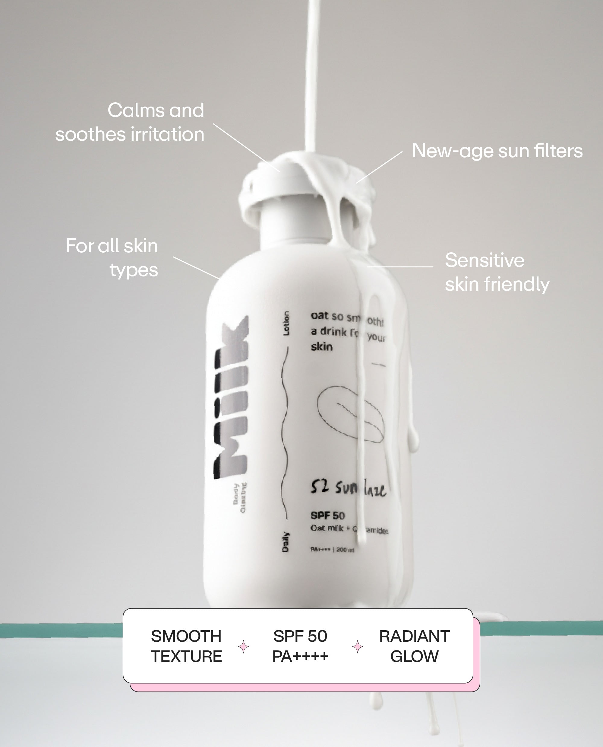 It’s a lightweight body sunscreen with SPF 50 | PA++++, enriched with ceramides, niacinamide, and oat milk extract — designed to protect, hydrate, and soothe your skin all at once.