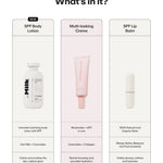 The Winter Combo is a 3-step hydrating ritual designed to combat dryness while keeping your face, body, and lips protected with SPF.
